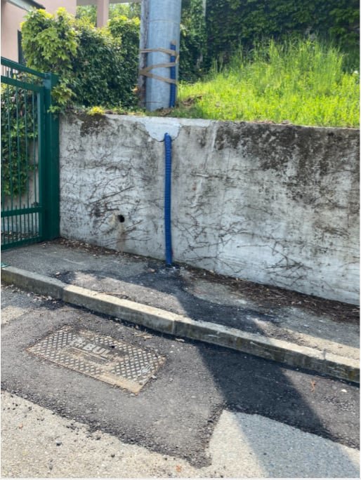 Cerchio 3: cancello di ingresso della mia abitazione dove il tecnico OF mi ha confermato che ci sarebbero dovuti essere ulteriori 2 tombini BUL, ma allo stato attuale non c'è nulla.
