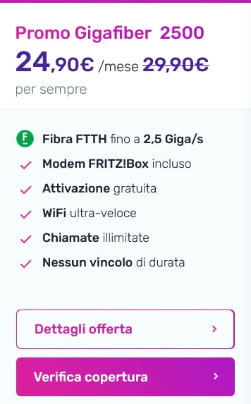 night0ne a me hanno installato la 2,5 oggi. E' passato il tecnico, ha tolto l’ONT e ha messo il 5530 ultimo modello (al posto del mio 7590, utilizzabile solo a cascata) e mi ha detto tutto ok. Chiaramente, non ho nessuna possibilità di controllare sia effettivamente stato fatto tutto (chiaro che nel modem riporta 2,5 l'aggancio ma, soprattutto, l'upload è salito a 650). Comunque, grazie ancora per la dritta.