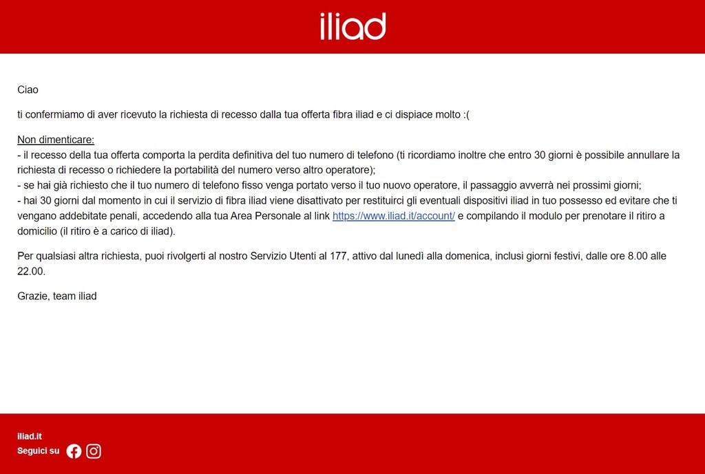 Oggi ridicolissimi... Li chiamo e l'operatrice dice che la mia pratica è stata chiusa (non ho ricevuto alcuna mail di risposta) perchè open fiber dice che la loro rete è ok. Grazie al cavolo non è un problema di tratta! Ho spiegato che ho mandato sia le prove che il link al forum ma l'operatrice continuava a dirmi mandi un'altra PEC e veda cosa le dicono.... Dopo averla presa per incompetente e averle rinfacciato di non capire quello che le stessi dicendo, ovvero che i problemi non sono di open fiber ma alla fonte iliad, mi son incavolato ed ho chiuso... Operatori assolutamente ignoranti... Ora vado di conciliaweb e successivamente passaggio a TIM.