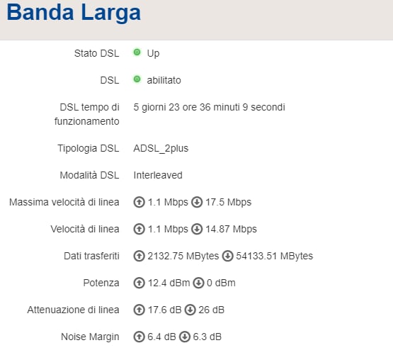 KDRZ Ciao ragazzi, vi posto le statistiche del mio TIM Hub per la mia ADSL, volevo sapere se magari fosse possibile arrivare a 17mb come nella velocità massima indicata. (Ho già l'impianto sezionato dal Tecnico TIM) Magari non lo è nemmeno ma non sapendone molto chiedo. Ringrazio in anticipo chiunque risponderà