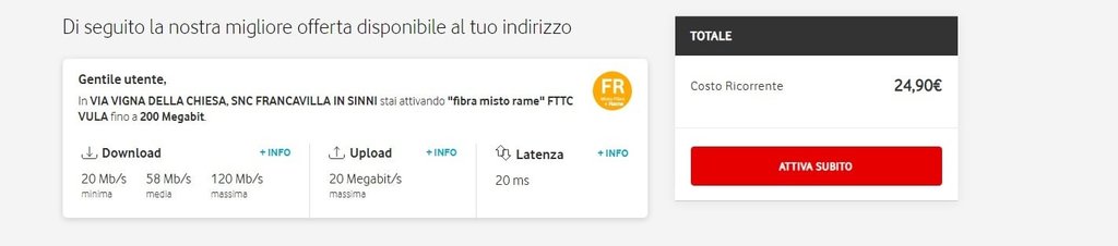 Premetto che sono distante circa 850m dal cabinet quindi già so che il miglioramento non sarà elevato ma comunque sul sito Vodafone mi da delle buone previsioni per la banda, anche per la minima.