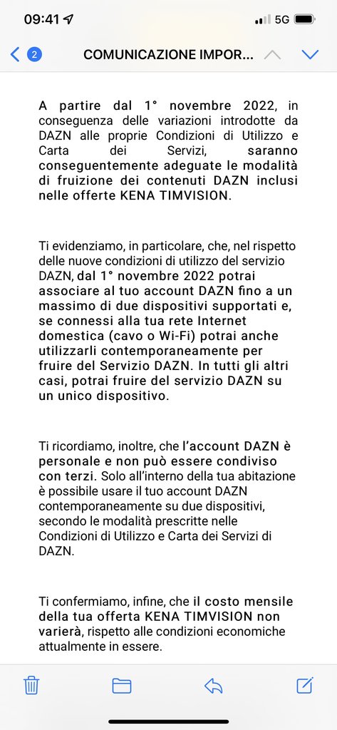 Camel90 Ma qualcuno ha provato a guardare Dazn con lo stesso account ( standard), con piu dispositivi da Reti differenti? Io ho fatto la prova ora con la partita della Lazio na funziona comunque....