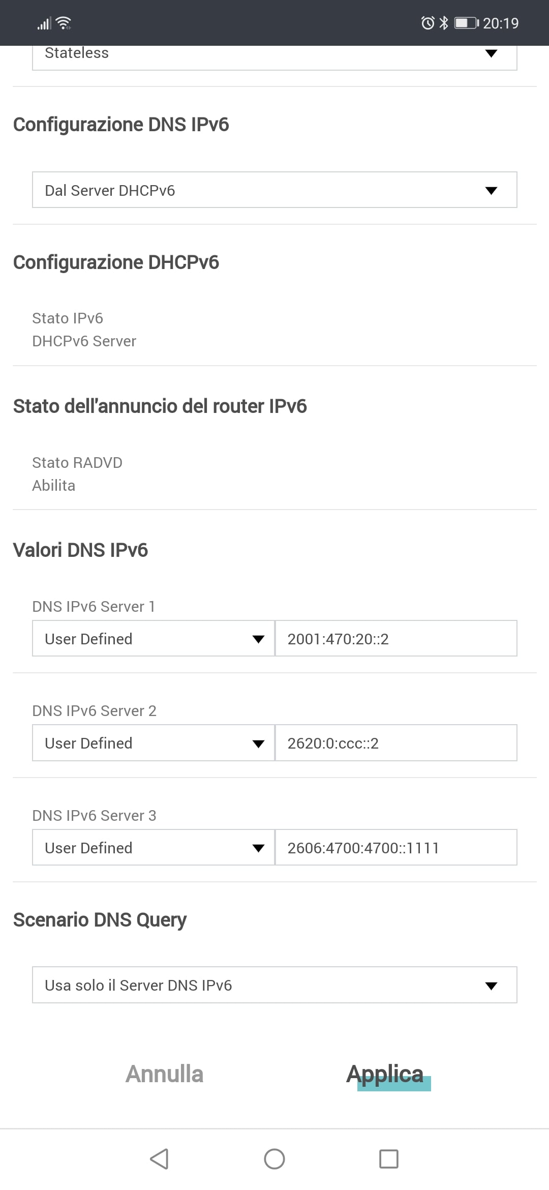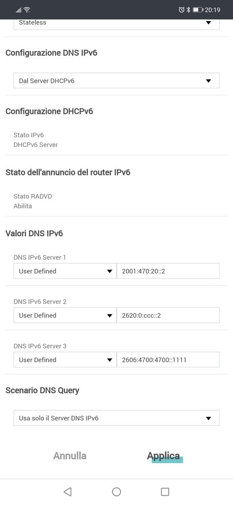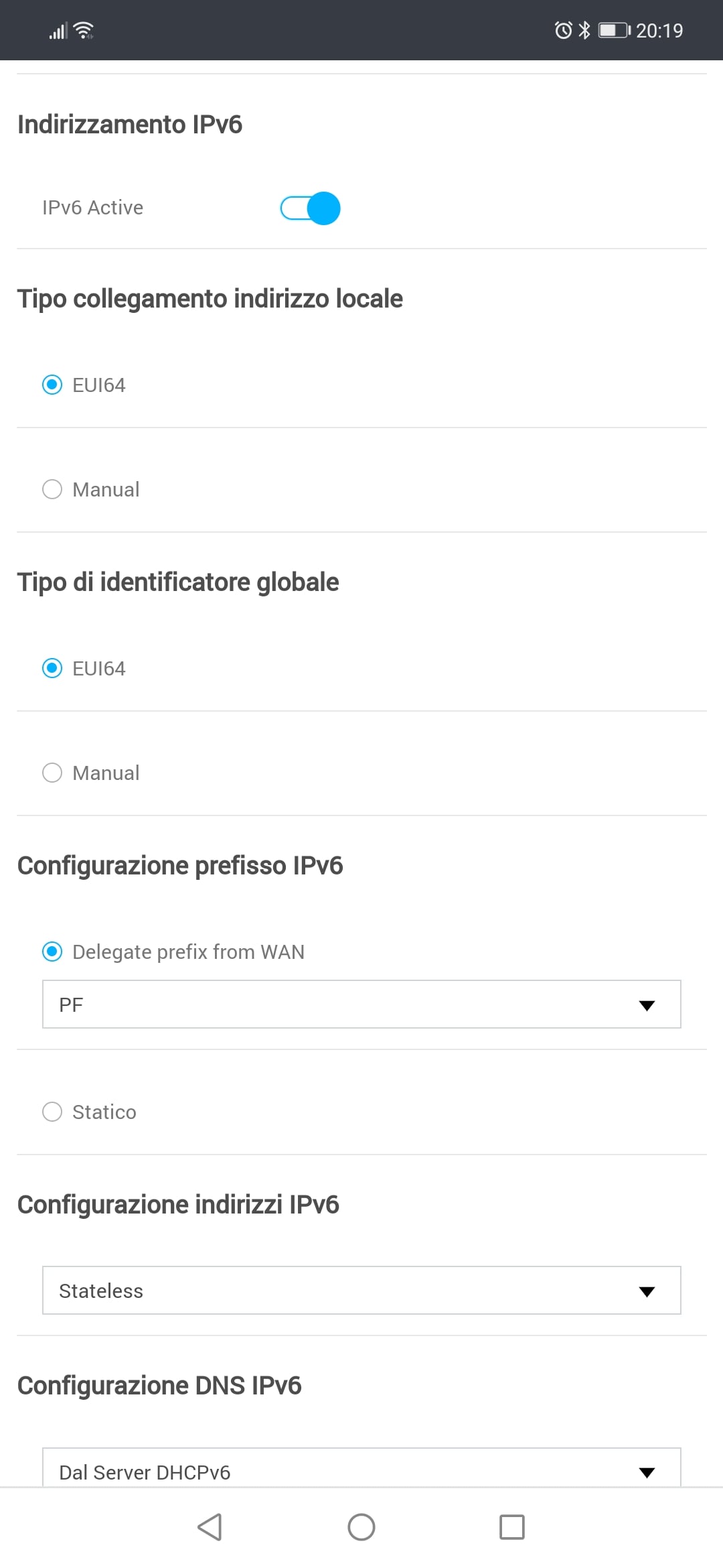 nanomad Enes Oddio non ho idea, lascio la parola ai più esperti di quel router. Però ti ri-offro la possibilità di auto su Telegram. Che probabile che la svanghiamo visto che l'IPv6 lo riceve lato router 😆