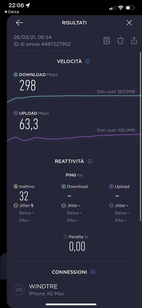 Con Vodafone sono molto soddisfatto della velocità 4.5g (anche se non dappertutto ha gran copertura): faccio 100/150 Mb/s in down e 15/25 Mb/s in upload.