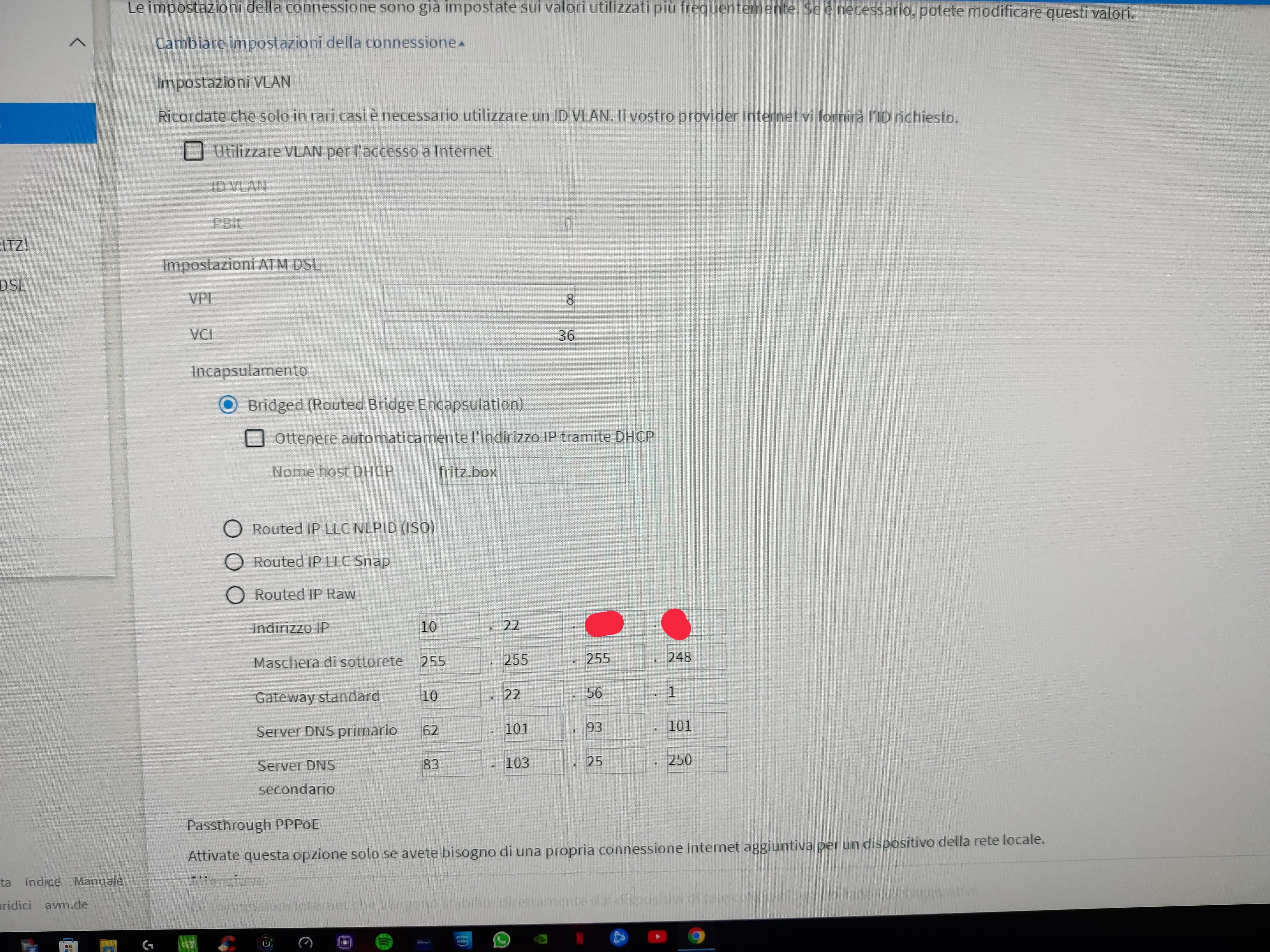idark QC96 Hai provato a mettere ID VLAN a 100 se sei in VULA, oppure se sei diretto ID VLAN a 836? Magari puoi provare ad attivare "Ottenere automaticamente l'indirizzo IP tramite DHCP". Vedi se cambia qualcosa.