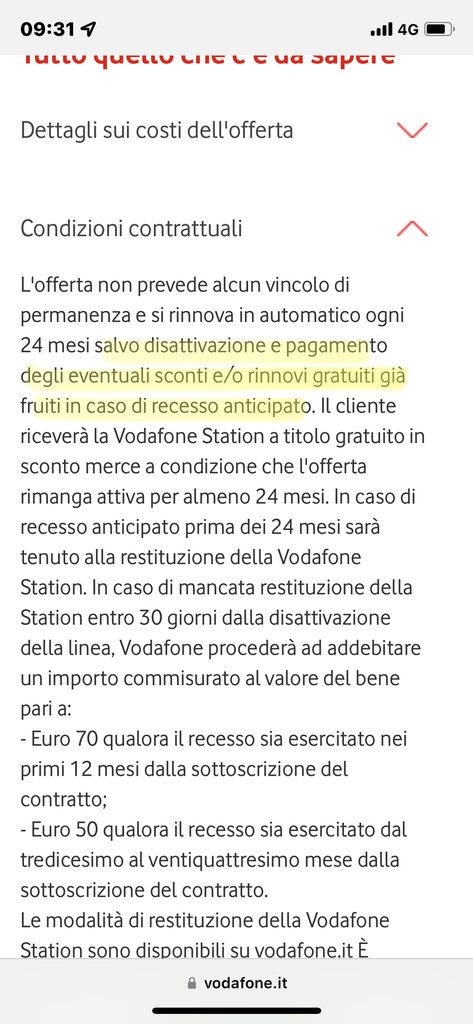 L’unico dubbio che mi ferma da avviare la procedura è questa frase nelle condizioni contrattuali (immagine); non vorrei che se dopo 15 mesi cambio operatore mi fanno pagare quei 5€ che sono scontati dal canone.