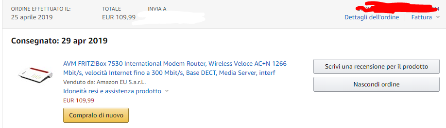 Mi aggiungo pure io (tanto per)! Fritz!Box 7530 comprato su amazon (io l'ho pagato 110), aggiungo prova della acuquisto: