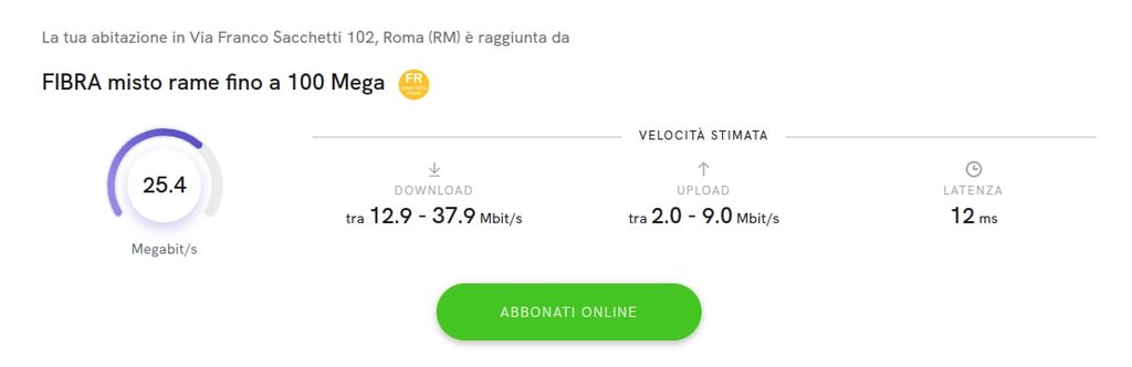 ho acquistato un appartamento a Roma in Via Franco Sacchetti 102, verifico quindi la copertura per il mio indirizzo e viene indicato fibra misto rame.