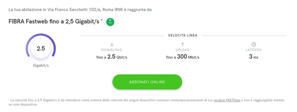 Chiamo Fastweb per segnalare la cosa ma mi ripetono a pappagallo che per il mio civico, il 102, non c'è copertura FTTH. Gli segnalo l'anomalia del 102/A e il fatto che condomini del mio stesso condominio sono già attivi ma è come parlare con un muro.