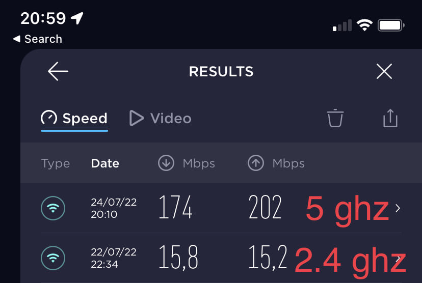 Effettivamente misurando in Wi-Fi con iPhone risulta 10-15 mb in download, nonostante la ricezione sia buona di circa 2/3.