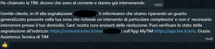 Lucio1V Klik rivende la Tim, ma credo che rispetto ad altri operatori non sovraccarichi di utenze gli armadi (o centrale?).