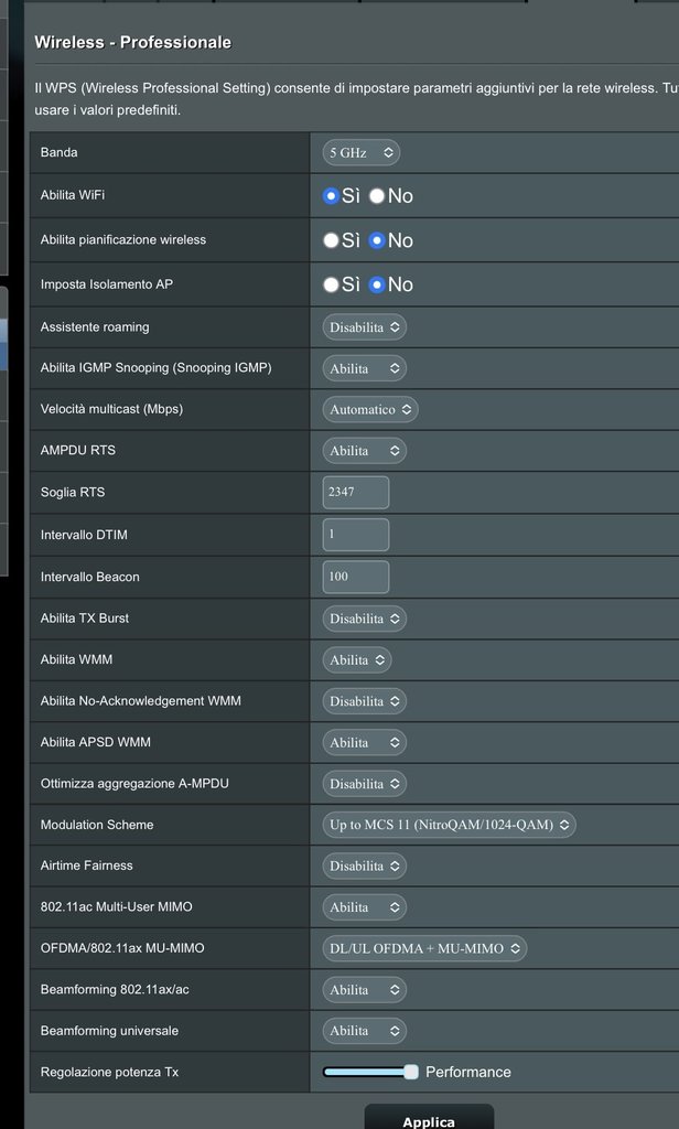 è un paio di giorni che noto a volte un “stacco” lato wifi del mio iPhone 12 - ovviamente in quei “secondi” iPhone si sgancia da internet ( in particolare al piano primo quando è connesso sull’Ax88U) dai log noto che si disconnette/riconnette all’Ax88u per motivi di -xx db rssi