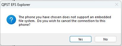 semplicemente perchè dopo aver installato il package di remserial dai repo di openwrt, ho solo quella opzione. Non se sia questa la causa del problema, ma quando arrivo a connettermi con QPST, imposto l'ip e la porta, provo a connettermi all'EFS, clicco OK al messaggio, poi me ne compare un altro che è il seguente: