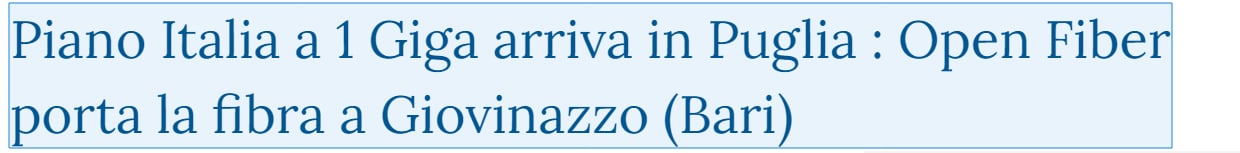 mito94 MassimoC Verso la metà di Novembre ci saranno le prime assegnazioni ai service di progettazione. Stime indicative, ma ufficiali. Ciao Massimo, rileggevo questo tuo post. Visto che siamo già indicativamente alla data da te prospettata, ci sono novità riguardo le assegnazioni Fibercop per il Piano Italia 1G? O è ancora tutto fermo a ZERO? 😉Sempre se puoi dirci qualcosa a riguardo...