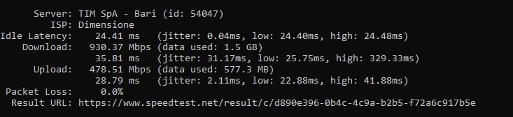 Su TIM - Bari il Nokia va così (sempre scheda di rete 1G): https://www.speedtest.net/result/c/d890e396-0b4c-4c9a-b2b5-f72a6c917b5e