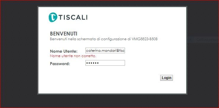 CaterinaMandarino Non riesco ad entrare dalla mascherina che chiede user e pw: digito la pw che mi è stata fornita da Tiscali e con la quale entro anche sulla pagina mytiscali e poi l'username digito la mia email di tiscali come faccio sempre sulla pagina e mi da errore non so come fare!