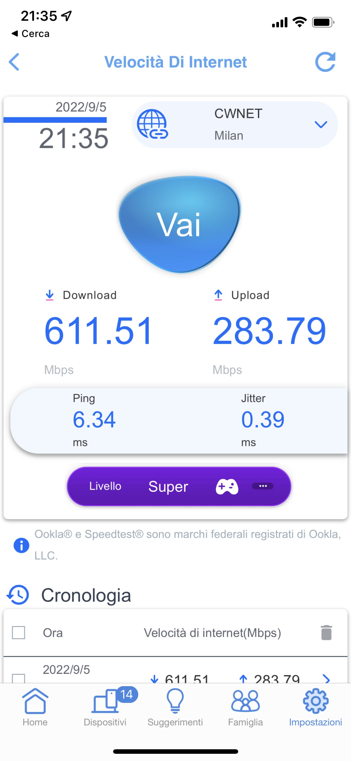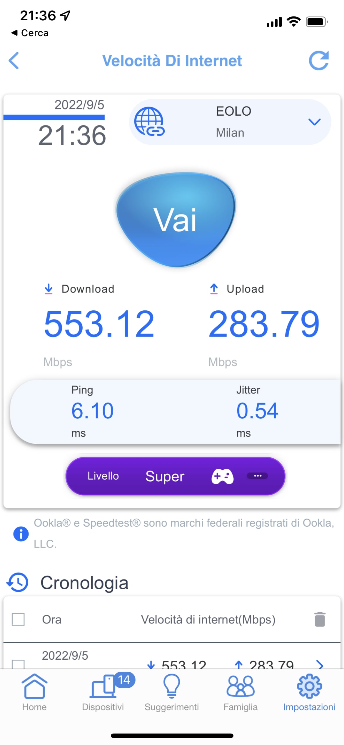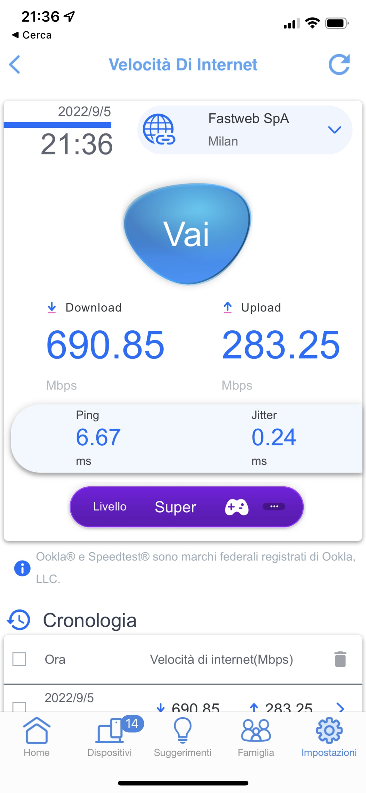 stefabona [cancellato] è incorporato nel router e dalle varie prove che ho fatto non c’è alcuna differenza rispetto ai risultati fatti dal pc. Non è il mio telefono in Wi-Fi che testa.