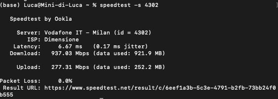 ansy67 Questa sera appena provato in un ora che era critica: ping 9 downland mbps 783,82 upload mbps 283.48.