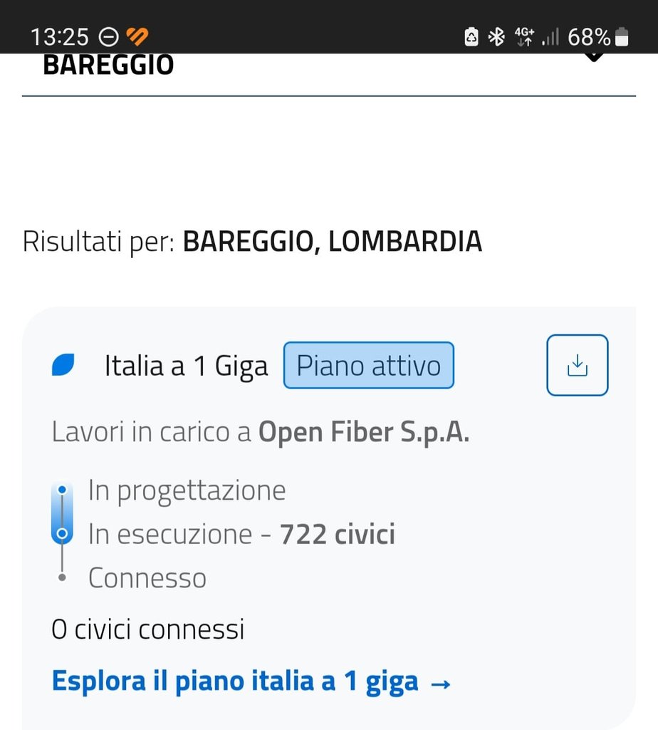 Solo per segnalarvi che oltre a Fibercoop Tim (6000 civici) che sta eseguendo la prima trance di lavori a Bareggio è in esecuzione da poco anche il piano Italia ad 1gb per circa 700 civici (di cui é presente elenco dalle consultazioni 2021).