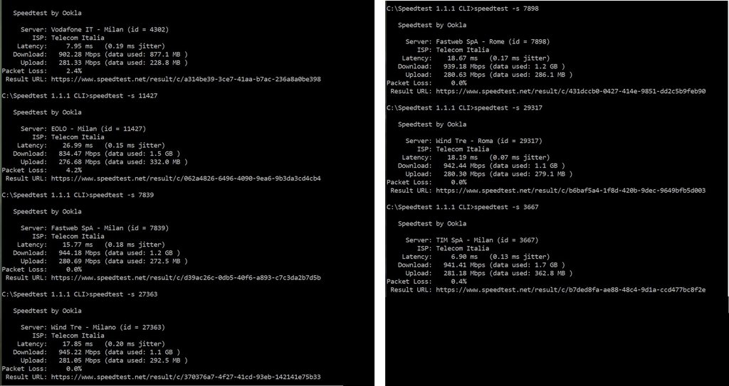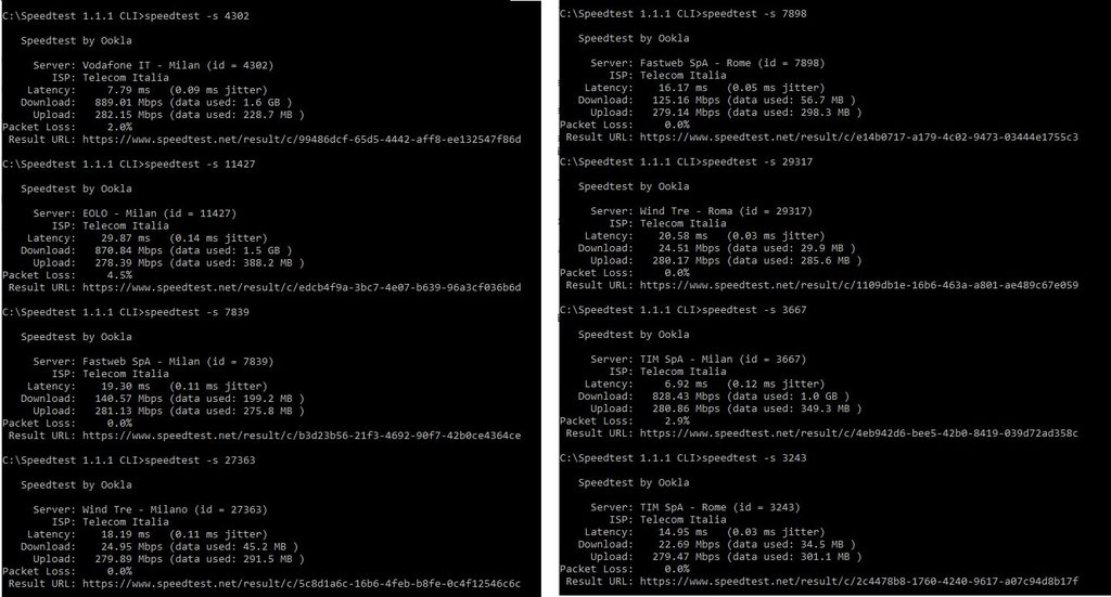 Allora sono andato a rifare tutti i test tramite CLI e mi accorgo che infatti il download è crollato al minimo nella maggior parte dei server testati (anche se non in tutti).