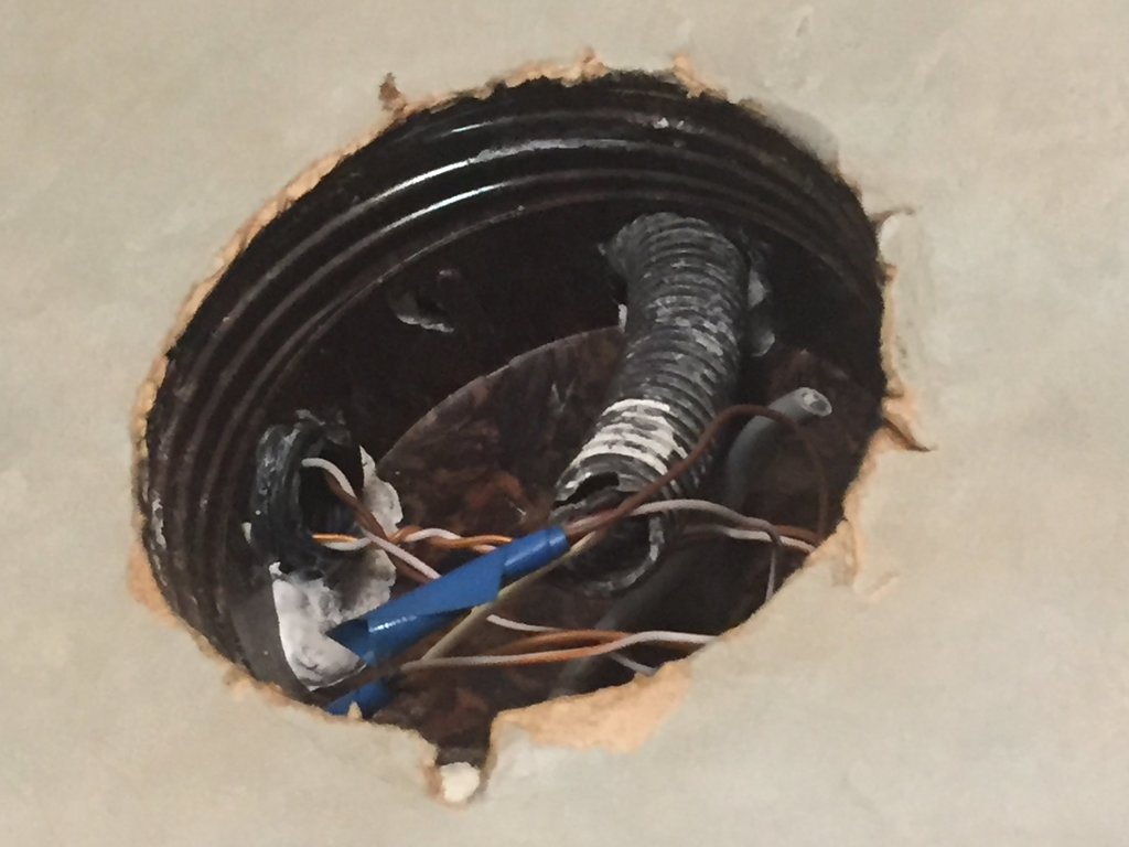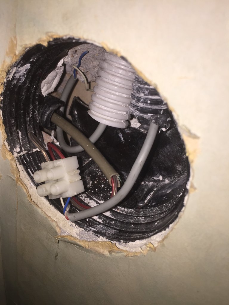 Questa è la scatola di derivazione sopra al portone di casa da cui arriva dal pianerottolo il corrugato a destra.