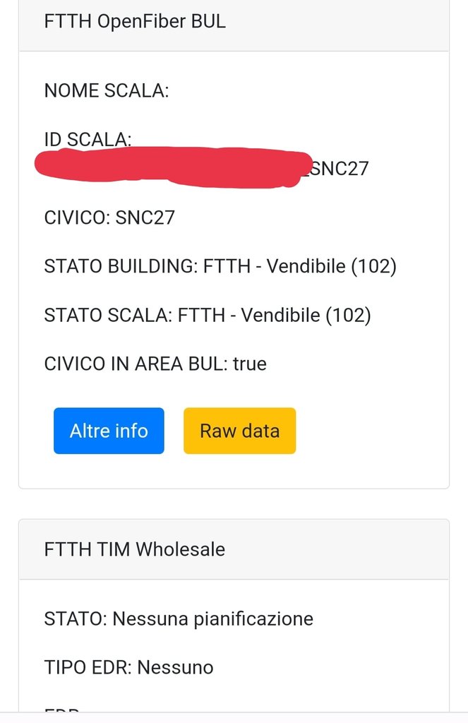 Mi spiego meglio, abito a Fregona (TV), da ormai vari mesi hanno fatto gli scavi e posizionato le moffole in tutte le vie. La mia via è collegata a due strade principali (puoi entrare nella via da due parti) e io mi trovo esattamente a metà, da sito bandaultralarga.italia.it la mia abitazione non ha nessun pallino al di sopra di essa, non sembra censita o attivabile. Oggi per scrupolo ho chiamato dimensione per chiedere delucidazioni e il mio civico risulta essere censito come SNC. Come posso verificare quale SNC sia stato effettivamente associato alla mia abitazione?