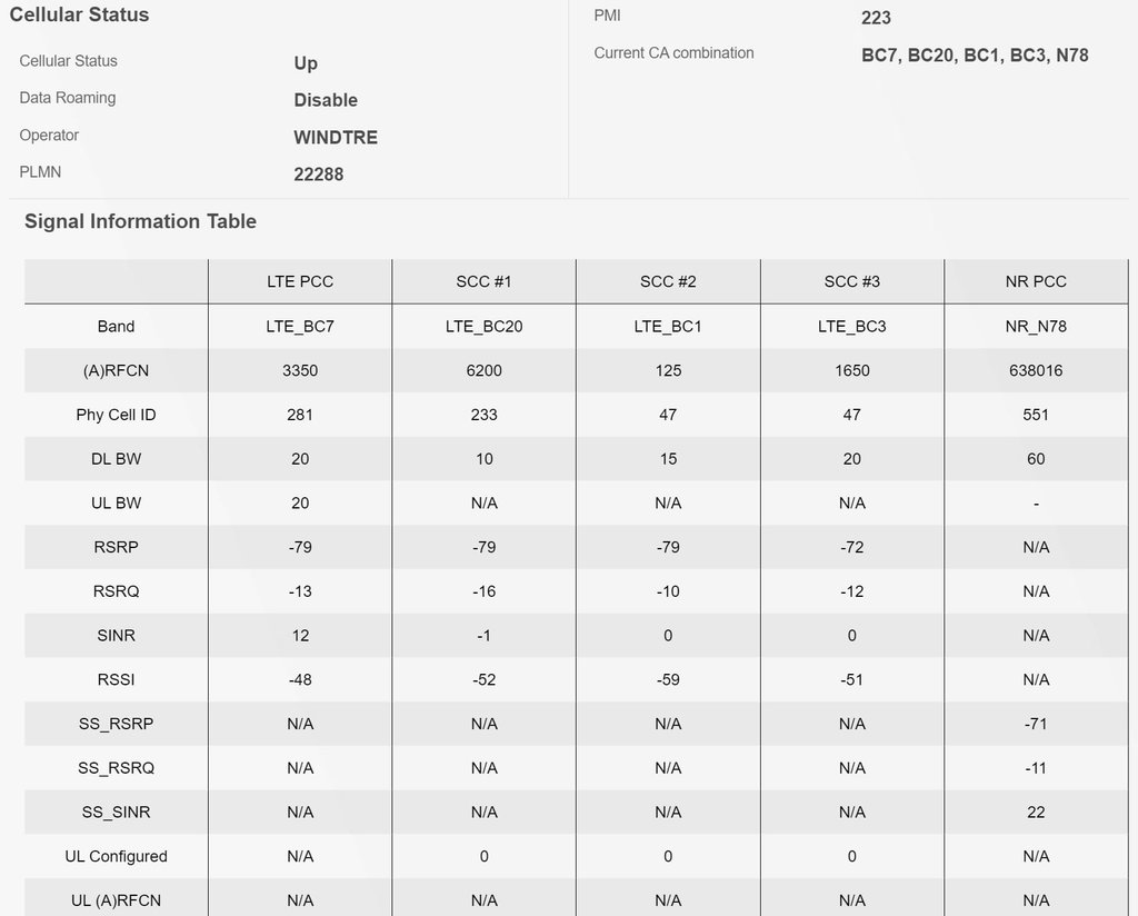 Viper80 @Alessandro8083 possiedo nr7101 acquistato su amazon3 giorni fa proceduto a fare aggiornamento fino all'ultima versione RG502QEAACR13A02M4G mi chiedevo conviene passare alla 13A03M4G? ora sotto 5g raggiungo una buona velocità 640 mb/114 mb non male. ame principalmente intere più che altro la stabilità di ping che si aggira sui 25 però non è molto stabile nel tempo...conviene per ovviare a questo aggiornare il firmware mi darebbe migliorie a riguardo o dovrei pensare di fare il reso e prendere il modello successivo nr7102 o sentito il zyxel fwa710 molto prestante in 5g? o orientarmi su un altro tipo sempre outdoor? Cosa mi consigli? per avere il max di prestazioni e stabilità...linko gli screen dei dati banda...