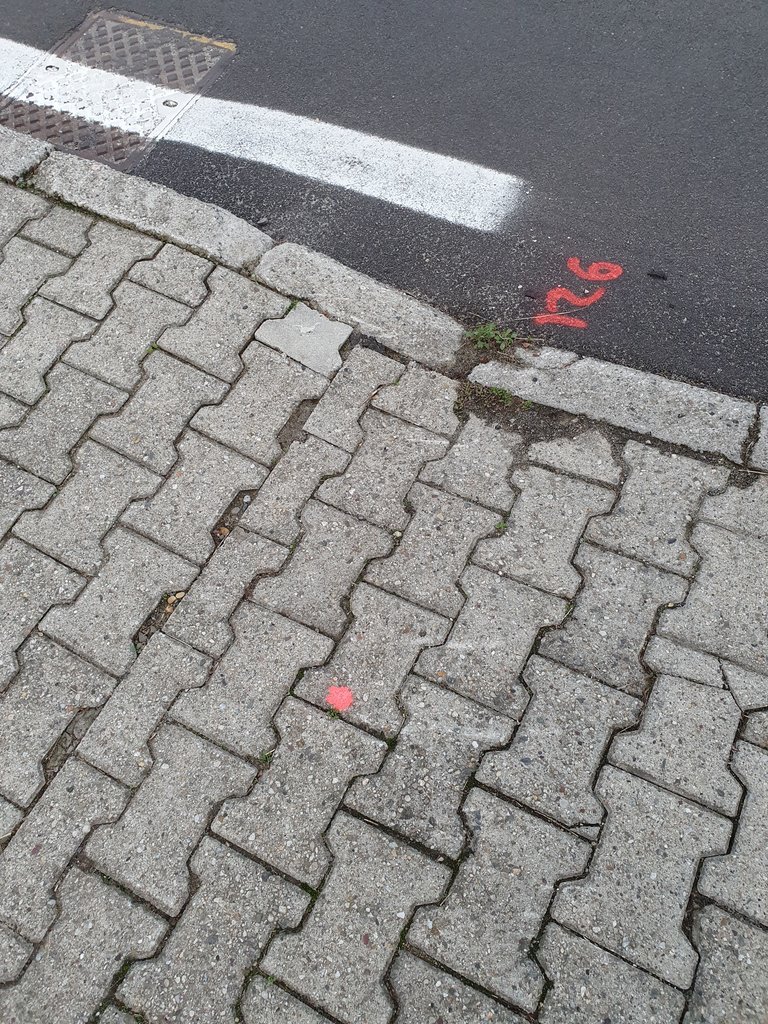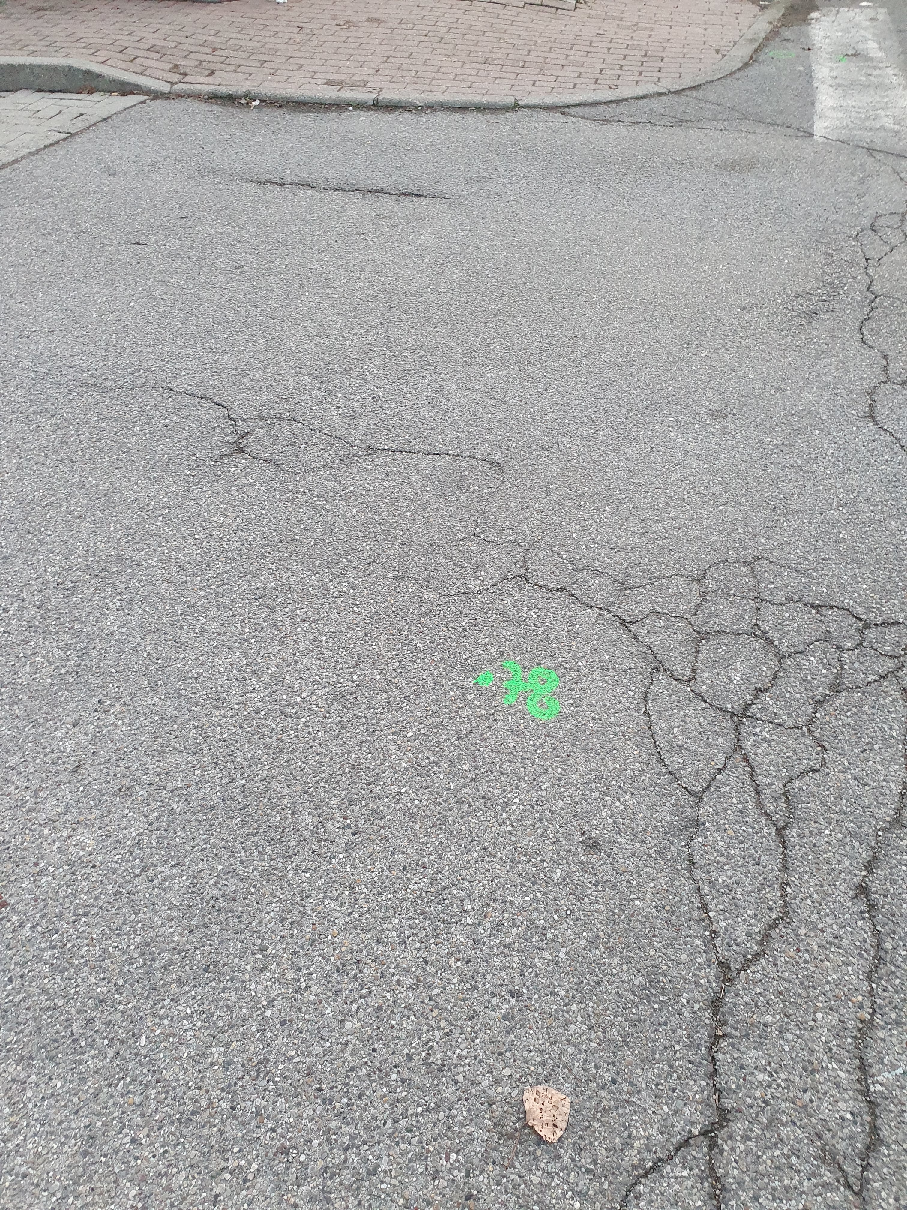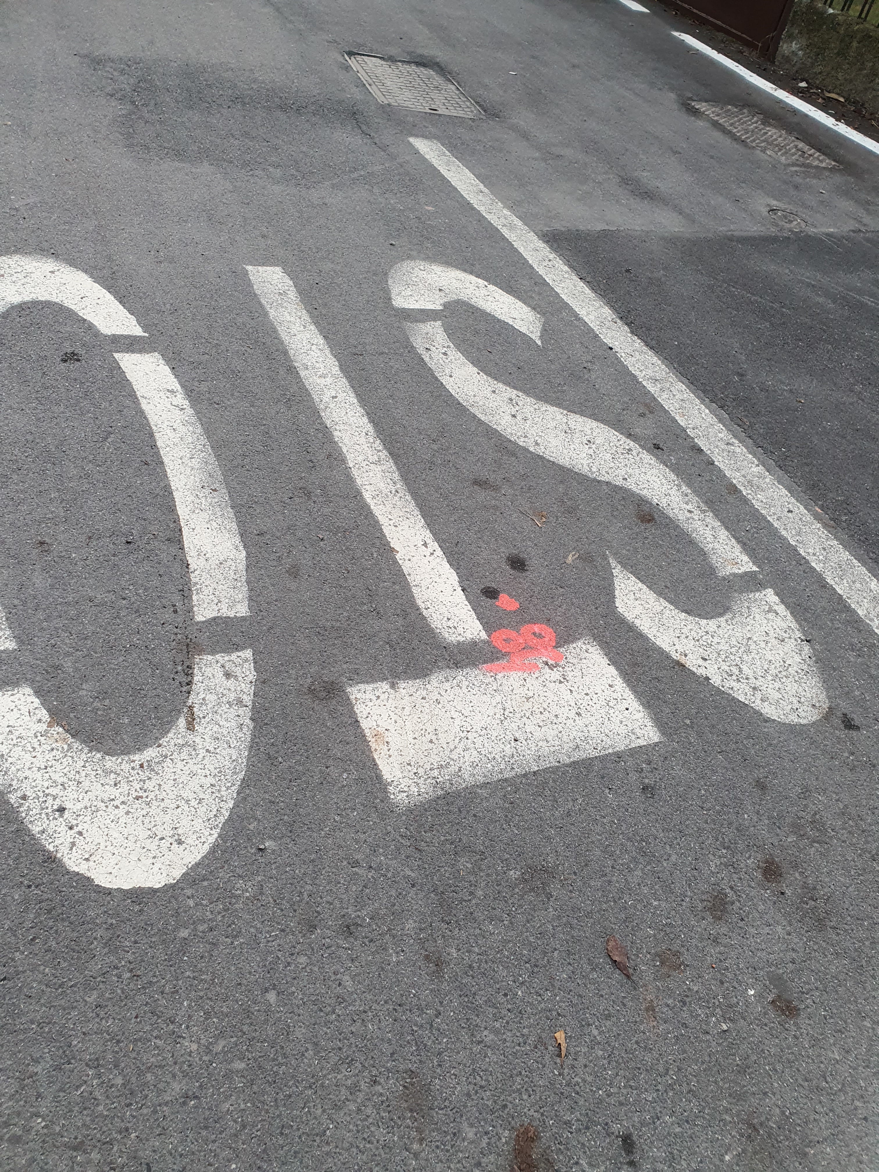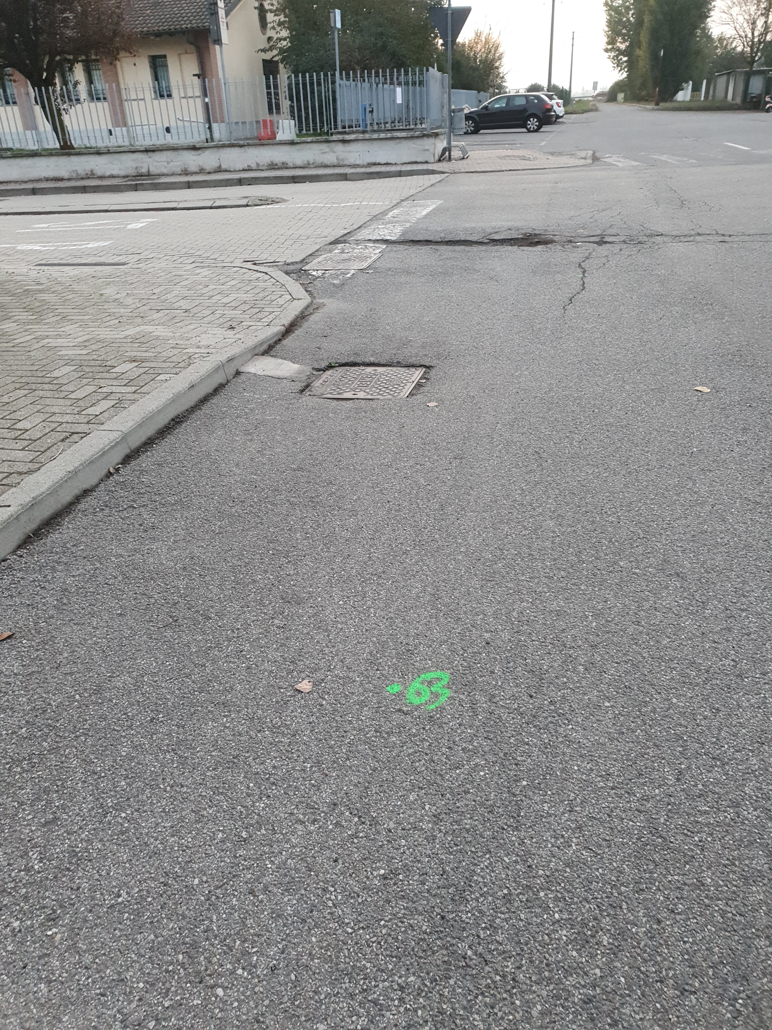illuca Potrebbe essere qualsiasi cosa, solitamente almeno per il mio comune, facevano delle scritte con 40X76, 80X120 per indicare la posizione dei tombini con la relativa dimensione. Dubito che al centro della strada facciano qualche scavo/mettano tombini. Sembrerebbe più una indicazione per il malto stradale rovinato.