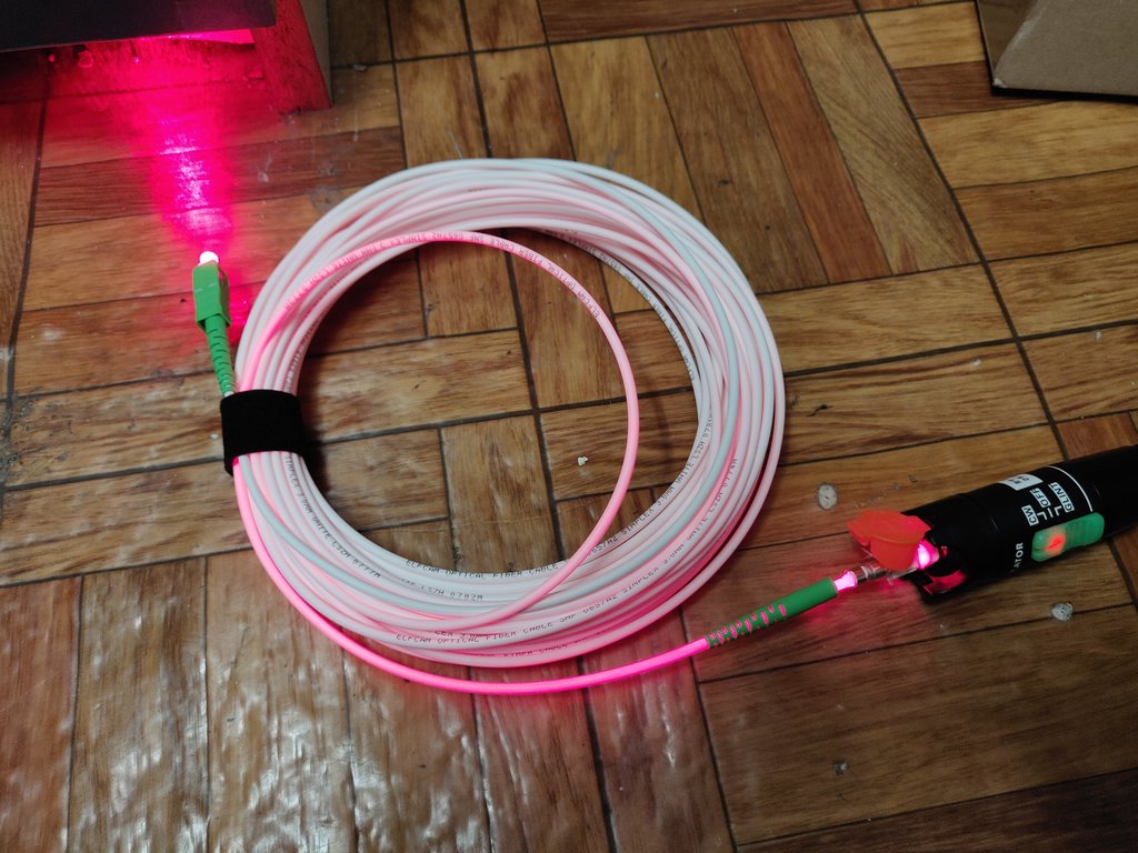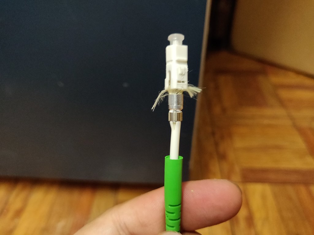 Ciao a tutti ragazzi, mi sto portando avanti per quando verranno a cablarmi in FTTH quelli di Open Fiber, siccome mi sono fatto tutta una cosetta di fino vorrei evitare borchie messe a caso ed in bella vista o inestetismi del genere, così mi sono passato da solo un cavo fibra comprato su Amazon (Cavo Fibra Ottica SC/APC per SC/APC Simplex Monomodale 9/125, 15M) ma da quanto ho letto questi cavi sono delicatissimi, quindi ho preso anche uno strumento per provare a capire se l'avessi danneggiata (30mW Localizzatore visivo di guasti fibra ottica, Tester per cavi in fibra ottica, Penna fibra ottica per CATV 20-30 km). Aggiungo che oltre a fare un po' di forza nel corrugato ho dovuto smontare il cappellotto verde di plastica più esterno altrimenti non passava.
