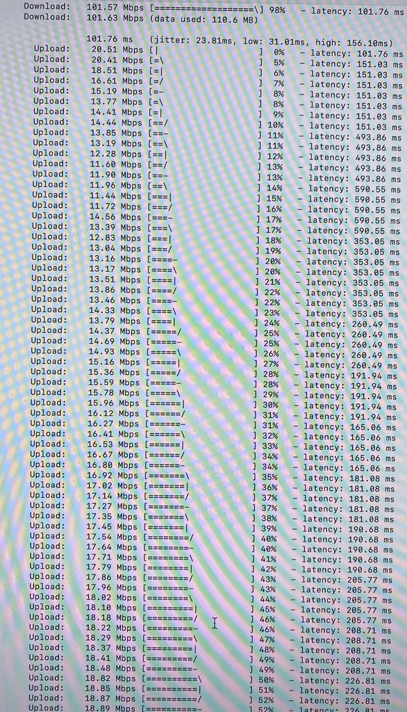 Una cosa però è cambiata negli ultimi mesi: quando faccio gli speedtest arrivo praticamente subito alla velocità massima ma poi ogni volta la velocità oscilla scendendo di circa 20mb per il download e di circa 10 mb per l’up (che dimezza quindi la velocità) per poi risalire un po’ più lentamente verso i valori massimi e mantenersi lì costantemente.