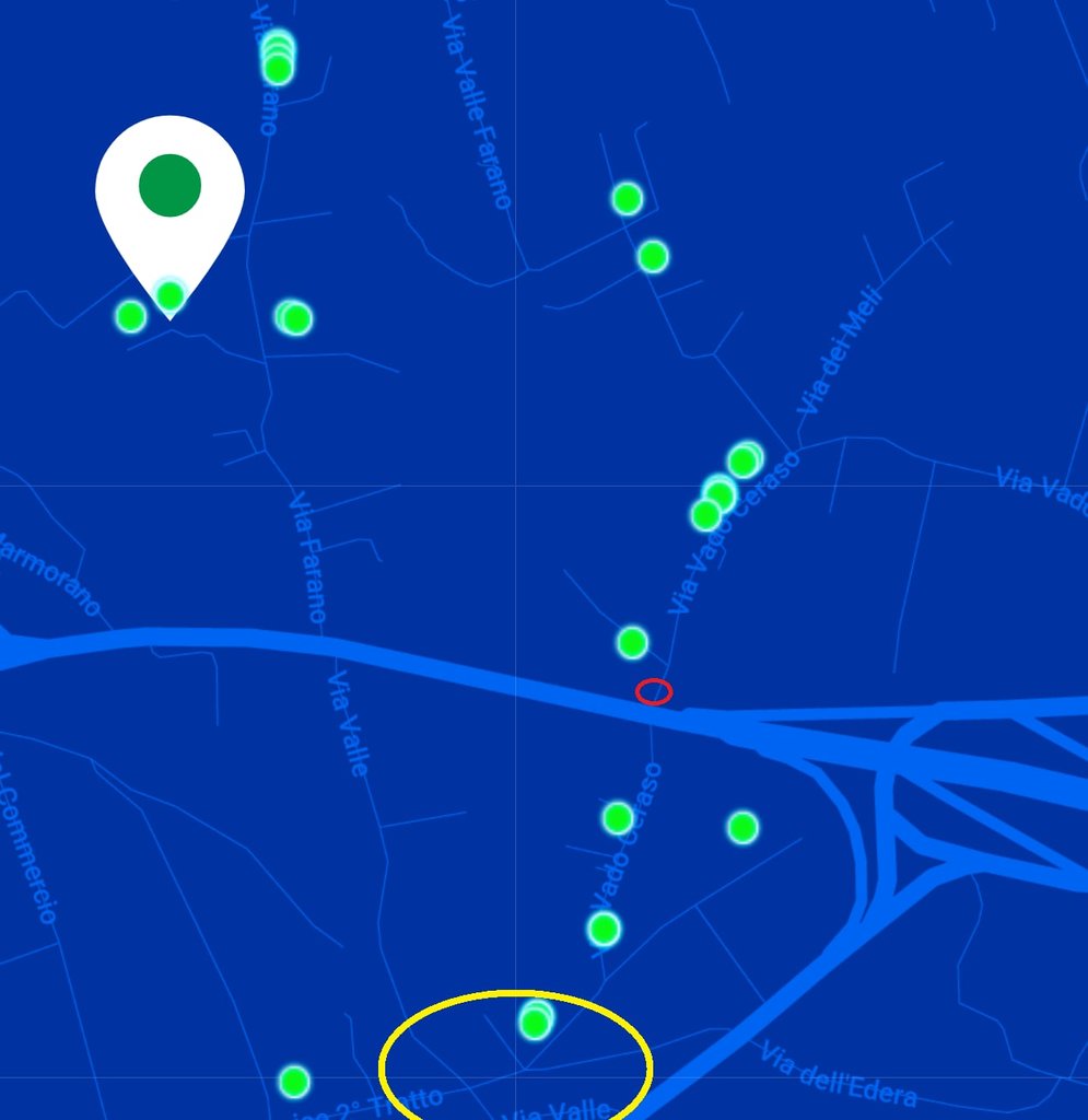 Ho fatto un giro qui intorno ed ho visto dove arriva l'armadio. E' a circa a 450mt in linea d'aria.