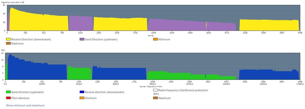 Sono piuttosto insoddisfatto delle prestazioni della mia FTTC Fastweb, di cui allego le statistiche estratte dalla pagina di amministrazione del mio FRITZ!Box: