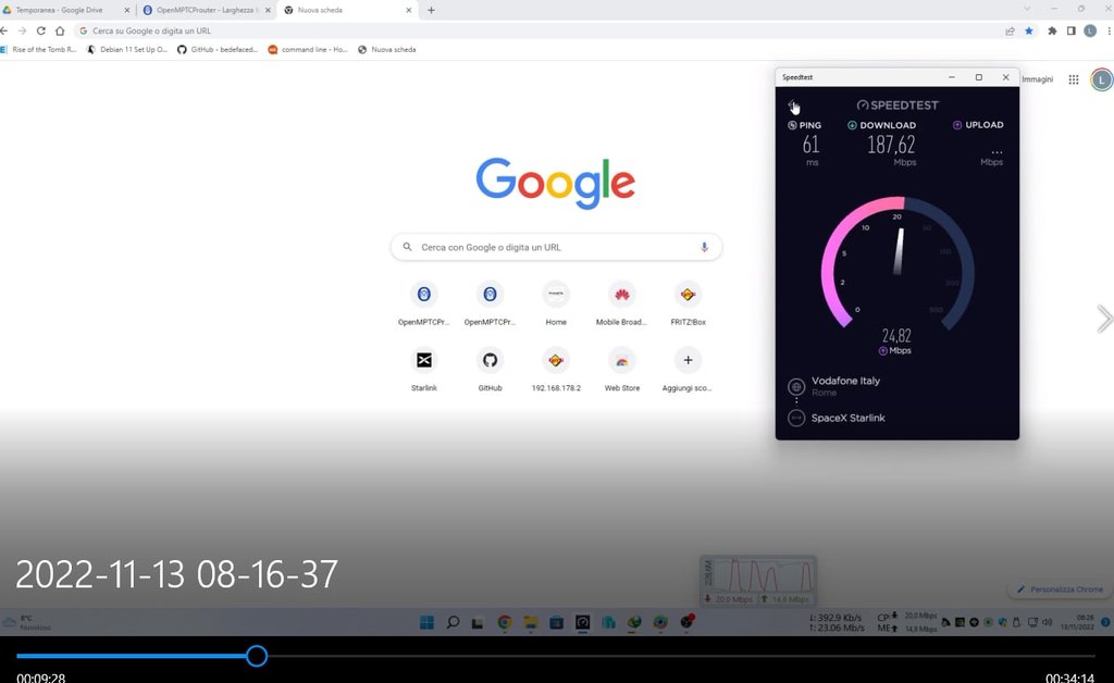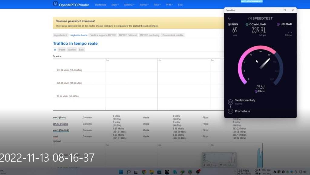 Sotto OMR (in sostanza un VPN sulla mia VPS) ho messo solo Starlink e l'up magicamente, (ho registrato tutto ma vi posto solo gli screen), va a 70/80 mega da speed test,