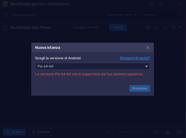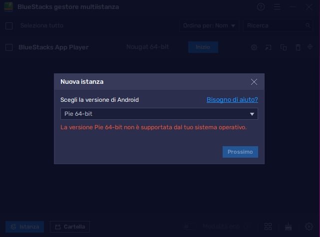 siummino Ciao Ho bluestacks e nel creare una istanza pie 64b mi esce scritto come da titolo "la versione pie 64 bit non è supportata dal tuo sistema operativo" Mi esce questo: premetto di avere windows 11 pro attivato con licenza e ho tutte le cose richieste da bluestacks attive (hyper v, piattaforma macchine virtuali, piattaforma hypervisor, ecc.)