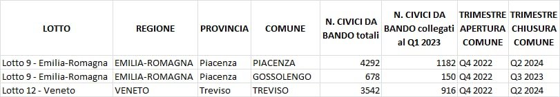 Vedo che nella sezione Bandi Infratel è presente la Programmazione Trimestrale aggiornata al 17/1/23, dove vedo sostanzialmente riproposti i comuni presenti nella Programmazione-Q4-2022 con però valorizzata la colonna "TRIMESTRE CHIUSURA COMUNE".