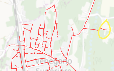 Inoltre è stata portata la fibra, tramite scavo nella terra a bordo strada, per tutto il tratto giallo (la dorsale che si collegherà al comune sede del POP), in arancione è la via che porta a Pianbosco (quindi coprirci non sarebbe un lavoro così lungo).