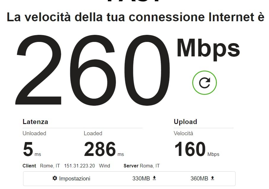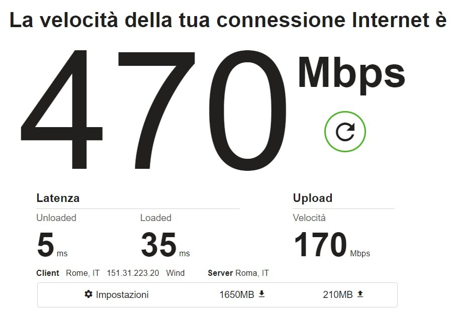 - SPEEDTEST CON 1200AX - collegato in Wifi6 a 1441/1441 (win10):
