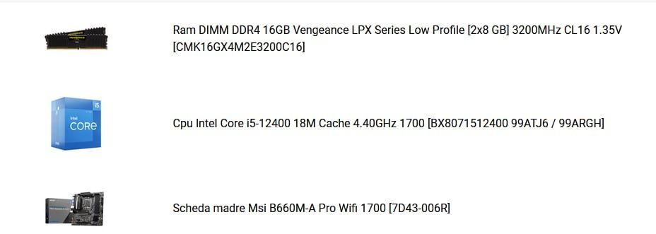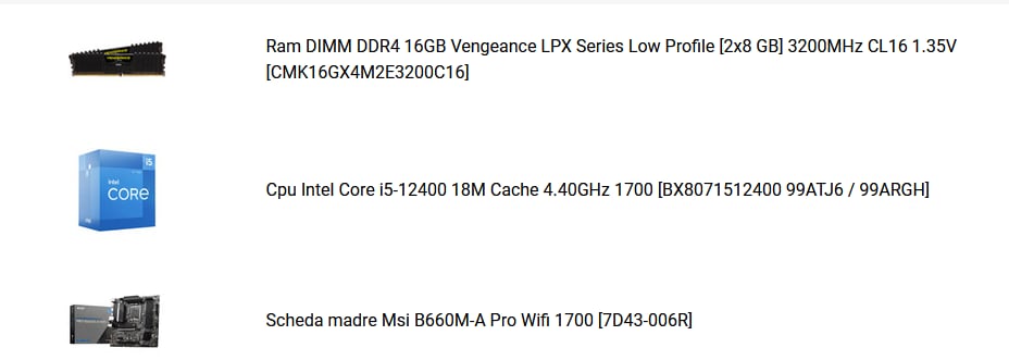 Da un sito ho acquistato scheda madre micro ATX, processore e memoria DDR4.