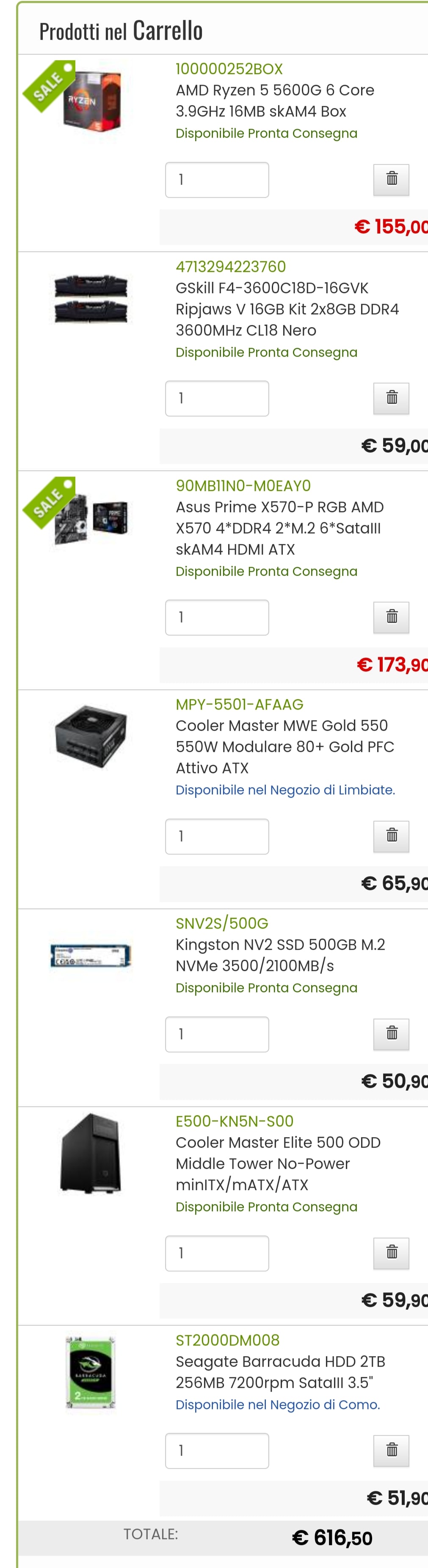 Per questi componenti, compreso dissipatore, ho speso 560 euro.