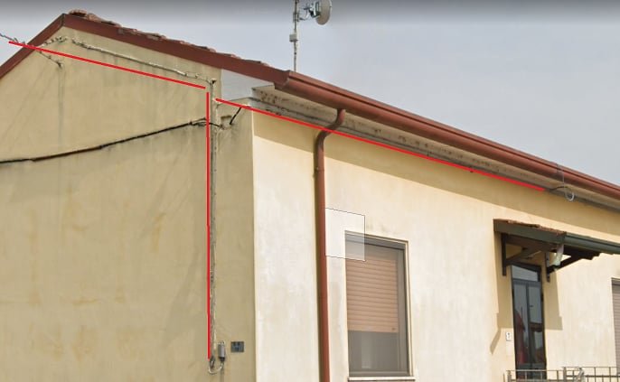 Se il cavo arriverà in quel punto, dovrò fare necessariamente delle tracce a pavimento per arrivare al muro della casa(non è ben visibile ma c'è un camminatoio)