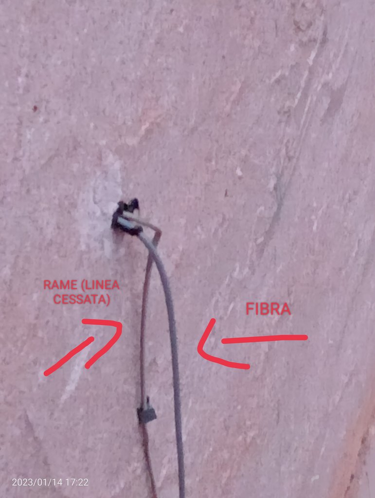 Insoluto verso Tiscali connessione sospesa passo da ftth a fttc con skywifi peggio ancora ... Nel frattempo durante i lavori il cavo in fibra si spezza ma visto che ero in fttc ho lasciato perdere, passo a Fastweb chiedo al Tecnico che il cavo e spezzato ora io mi ricordo che nella prima installazione il Tecnico ha pulito diciamo il core della fibra quello che è venuto a ripararla semplicemente spelato il cavo e fuso Fastweb attiva .. desync al limite del ridicolo su qualsiasi gioco che io abbia mai provato peggio dell'ADSL (li avevo solo il ping alto) ho fatto alcune foto del cavo diciamo all'ingresso dove entra in casa mia e mi dà la sensazione che sia troppo piegato .. ho letto in vari siti che potrebbe causare dei problemi tipo desync, ping instabile, cadute di linea, e anche nel mio caso Speed test che partono a razzo e poi si assestano bassi