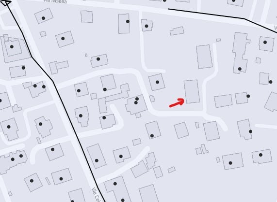 Nello specifico vi mostro la situazione da bandaultralarga.italia.it, il condominio in cui vivo è quello con la freccettina rossa, non risulta come unità abitativa così come alcuni altri accanto, eppure sono abitati eccome: