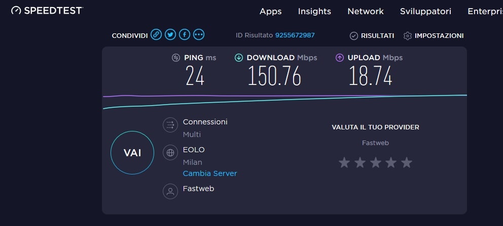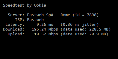 Speedtest fatti in nottata alle 01