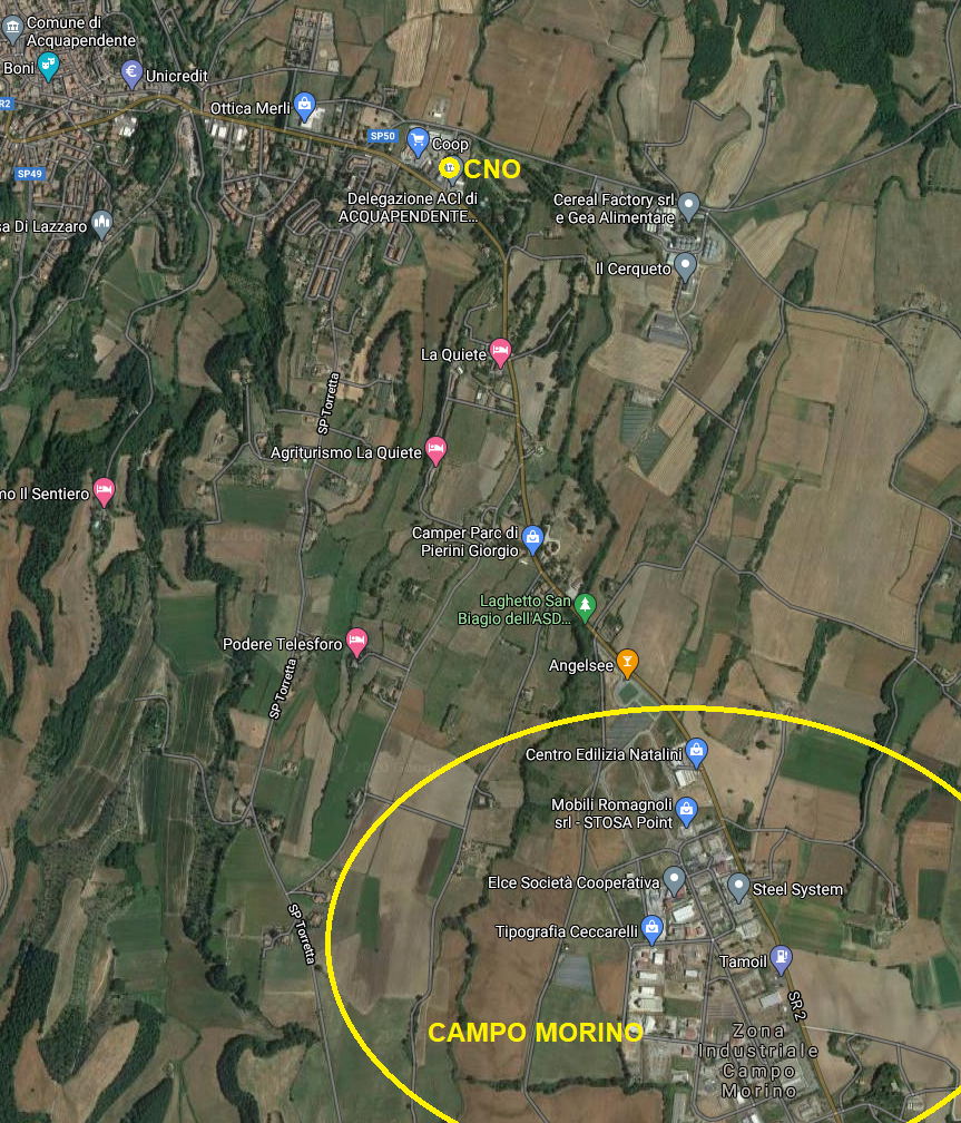 mappa estesa per fare vedere la distanza (3,5Km) tra CNO e la zona industriale di Campo Morino