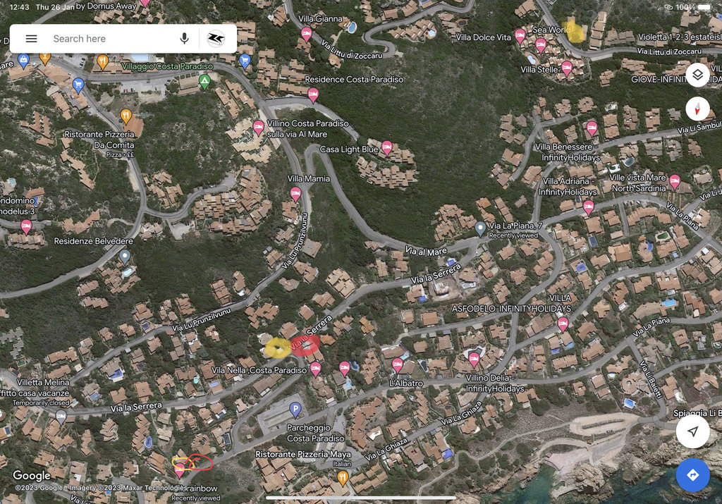 In giallo sottile e’ cerchiato il pozzetto di fronte alla casa che non risulta coperta