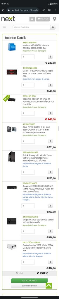 leo108 LuigiHiroshiMelis se vuoi il negozio sul quale ti ho fatto la configurazione te lo assembla e te lo spedisce,altrimenti vai di altro shop on line ma con meno di 1200 euro te lo fai un ottimo pc