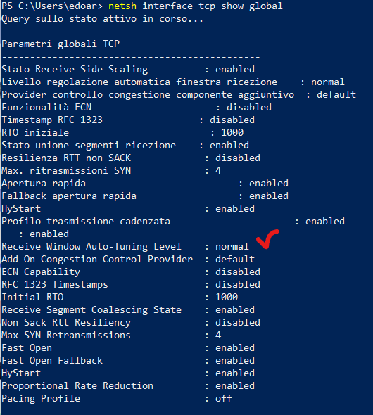 In altre parole ha settato su normale la funzione ' Receive Windows autotuning'