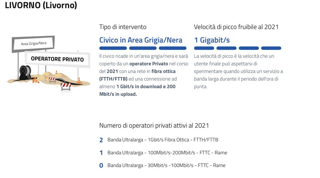 Salve a tutti, sono un nuovo utente del forum e ho bisogno di un piccolo aiuto per interpretare i risultati che trovo sul sito https://bandaultralarga.italia.it.