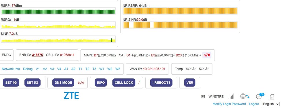 pappagone2000 In manuale anche io: internet.it. Ho provato a settare Network selection solo in 5g nsa e non come prima 3/4/5. Dopo provo a fare un riavvio. Grazie comunque. P.S. Niente da fare, anche dopo aver settato Network selection su 5g NSA al riavvio sono dovuto rientrare sul modem ed abilitare il 5G su ON , perchè risultava disabilitato e quindi senza connessione internet.