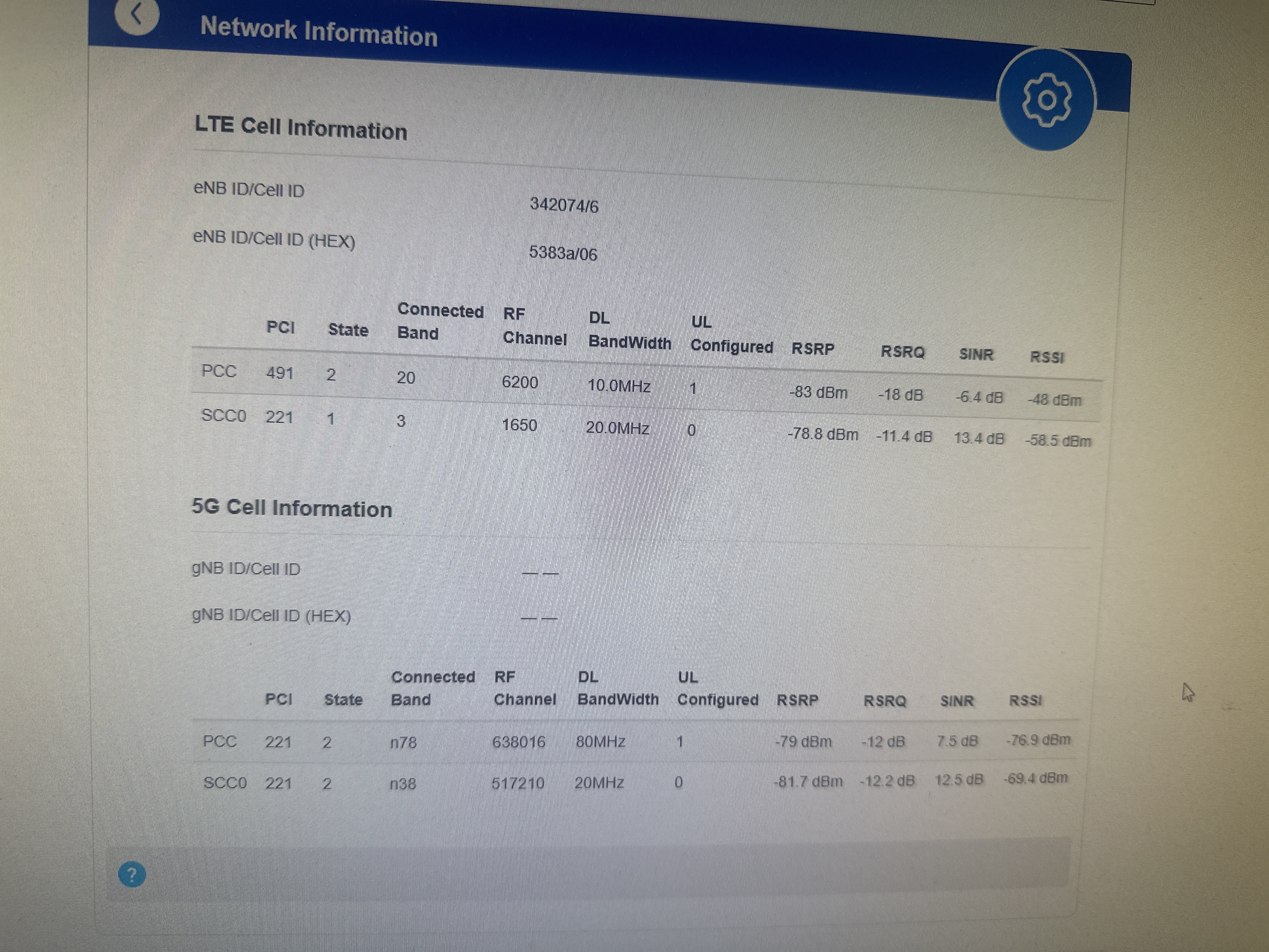 Riavviando l’MC889 tramite l’interruttore “5G settings” nella pagina iniziale otteniamo di nuovo una buona velocità, ma il miglioramento dura poco e il problema si ripresenta. Ho provato a cambiare l’orientamento dell’MC889 sul tetto utilizzando l’app ZTE Install Helper e verificando le velocità con il mio telefono, ma le prestazioni restano le stesse. Sta diventando davvero frustrante dover gestire continuamente la connessione per avere una rete stabile: sia io che mia moglie lavoriamo da casa. Sto seriamente pensando di abbandonare WindTre e passare a Starlink.
